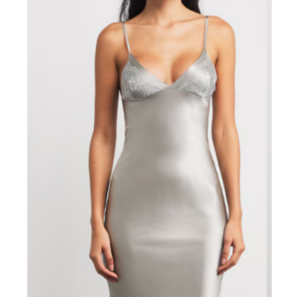 Gilda & Pearl Coco Silver Silk and Feather Slip Dress