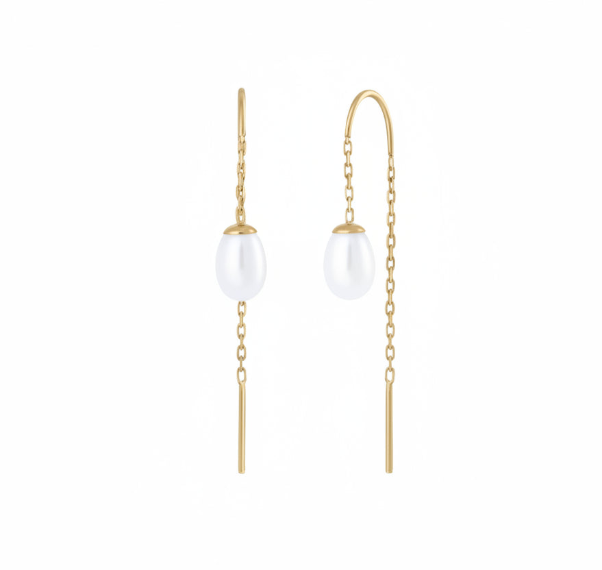 14K Gold Chain Earring with Natural Pearl