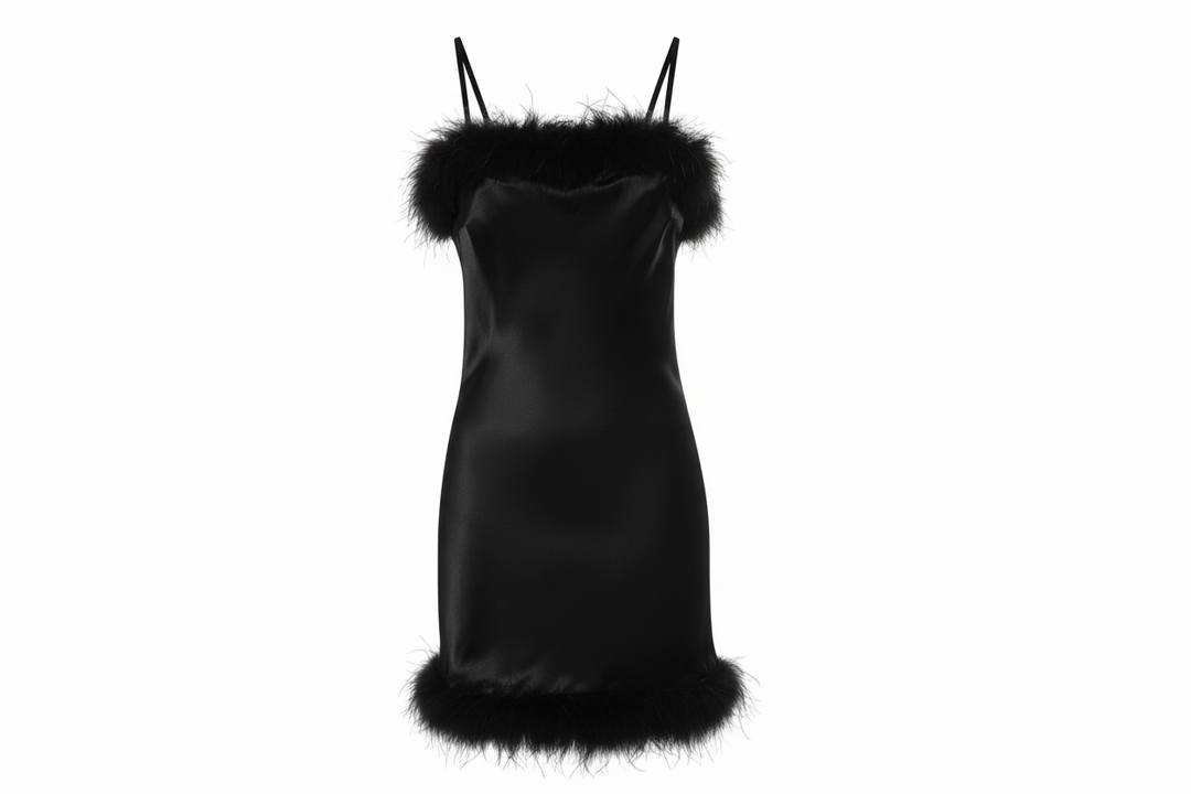 Gilda & Pearl Coco Black Silk and Feather Slip Dress