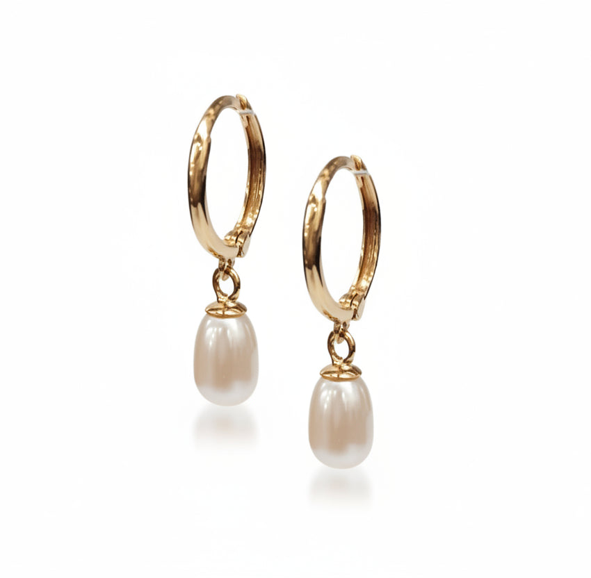 14K Gold Hoop Earrings with Natural Pearl Drop