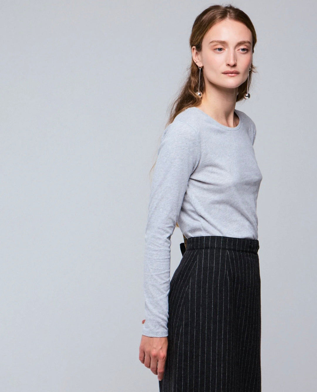 טי-שירט עם שרוולים ארוכים מצמר קשמיר וכותנה