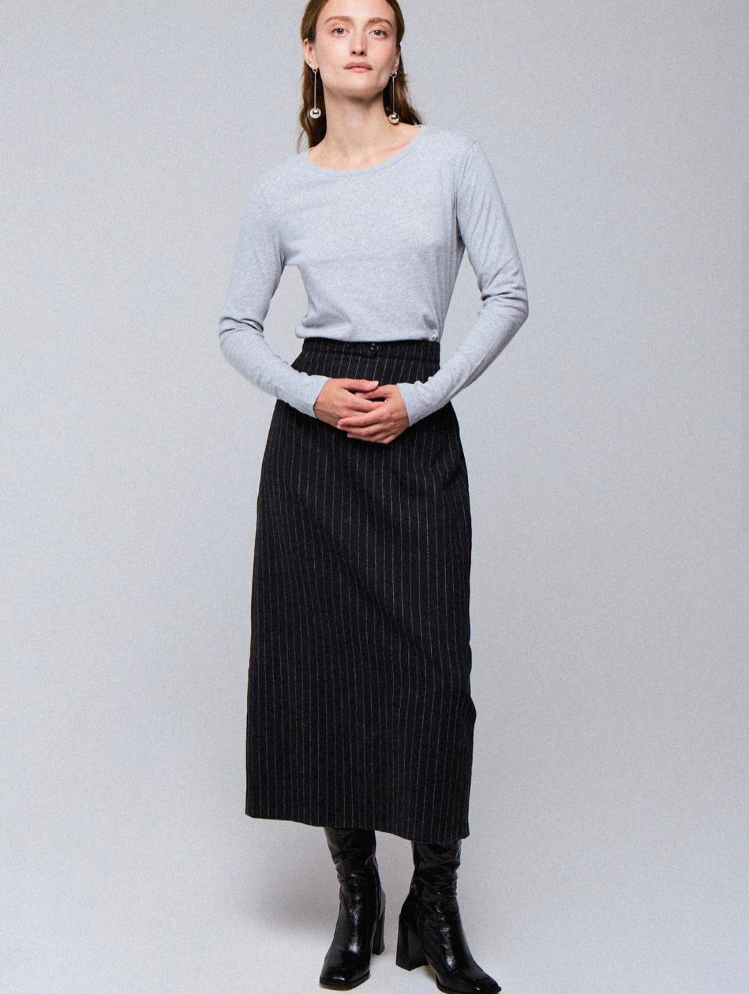 טי-שירט בגזרה ישרה, עשויה תערובת רכה במיוחד של כותנה וקשמיר, למגע נעים ולתחושת נוחות חמימה וקלילה. פריט נשי ואלגנטי שניתן ללבוש לבדו או מתחת לז'קט – מושלם לעונות המעבר ולימים קרירים.