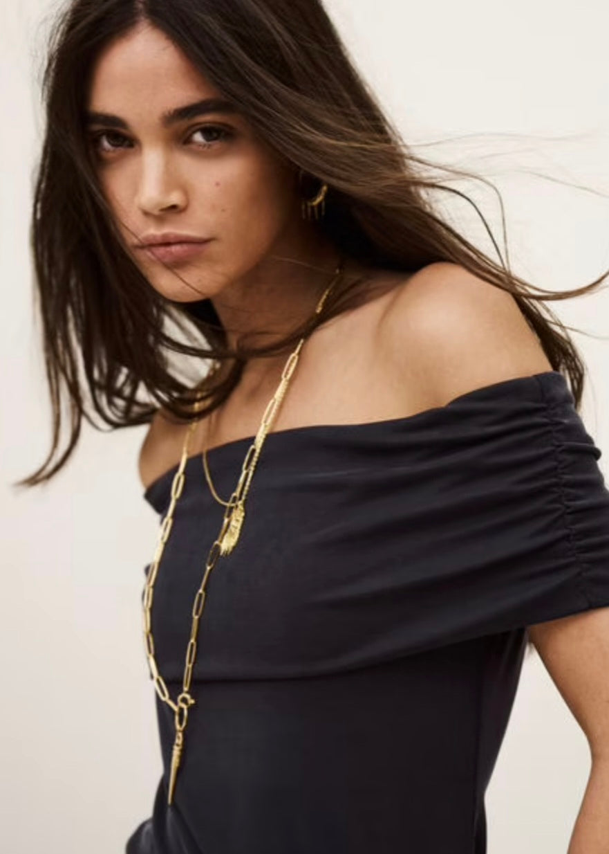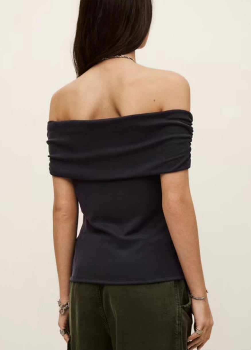 חולצת אוף שולדרס נשית ומחמיאה מבית BA&SH – מותג פריזאי יוקרתי המשלב שיק צרפתי עם נוחות יומיומית ועיצוב על-זמני.
