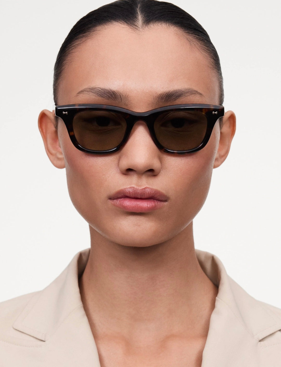 משקפי שמש במהדורה מוגבלת בקווים קלאסיים מתוחכמים בגימור ייחודי ונגיעות מתכת בצבע חום מנומר לנשים וגברים כאחד .עשויים אצטט איטלקי משובח