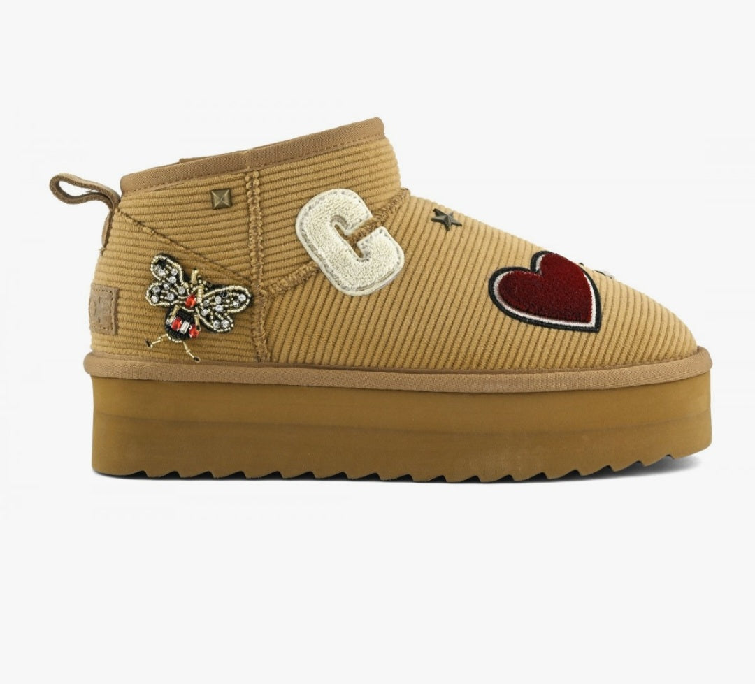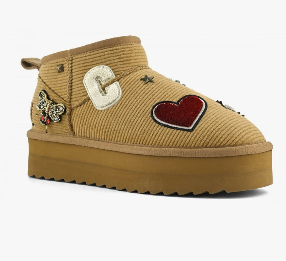 COLORS OF CALIFORNIA Platform winter boot in corduroy velvet with patches Tan