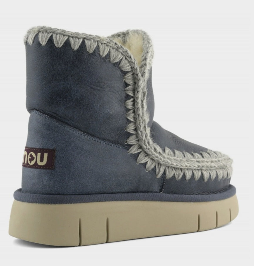 בגימור עור וינטג' ייחודי. הדגם מיוצר בעבודת יד מוקפדת מעור כבש דו-שכבתי חמים במיוחד, עם תפרי צמר סרוג בעבודת יד – סימן ההיכר של mou. כולל חיזוק תומך באזור העקב וסוליה חיצונית משולבת EVA וגומי, לנוחות מרבית ועמידות גבוהה.