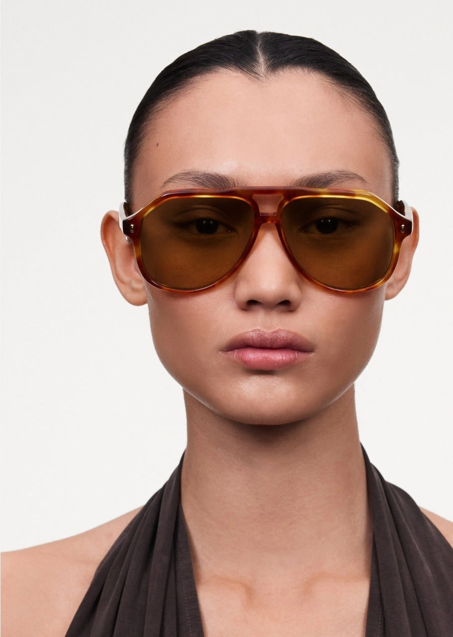 משקפי טוני הם צללית נועזת השואבת השראה מצורות וינטג' של שנות ה 70 בצבע שחור עם עם עדשות בגוון אמבר כהה  לנשים וגברים כאחד .עשויים אצטט איטלקי משובח